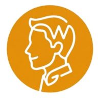 整體 Logo 採用簡約線條人物輪廓,結合字母隱喻設計: